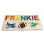 This customized 3D name puzzle is an ideal toy that doubles up as an accessory to deck up your kid’s nursery. With the images of a baseball, airplane and helicopter, this wooden name puzzle is perfect to generate curiosity among a little one and introduce various concepts to them. Made from Baltic birch wood, this name puzzle can be used as an amazing décor accessory or an educational toy to sharpen their fine motor skills. The name puzzle is 3/8 inches in thickness and 4 inches in height, depending upon the length of the name & images. Hand painted using non-toxic acrylic colors, this name puzzle can be placed on a shelf or hung on the door or over the bed. Use it as a gift for welcoming the newborn baby in the family and add a special touch to the baby’s nursery. The name puzzle has a glossy finish due to shellac coating, which is chemical-free and doesn’t have any odor. If you are looking for unique gift ideas, have a look at our amazing collection of name puzzles.